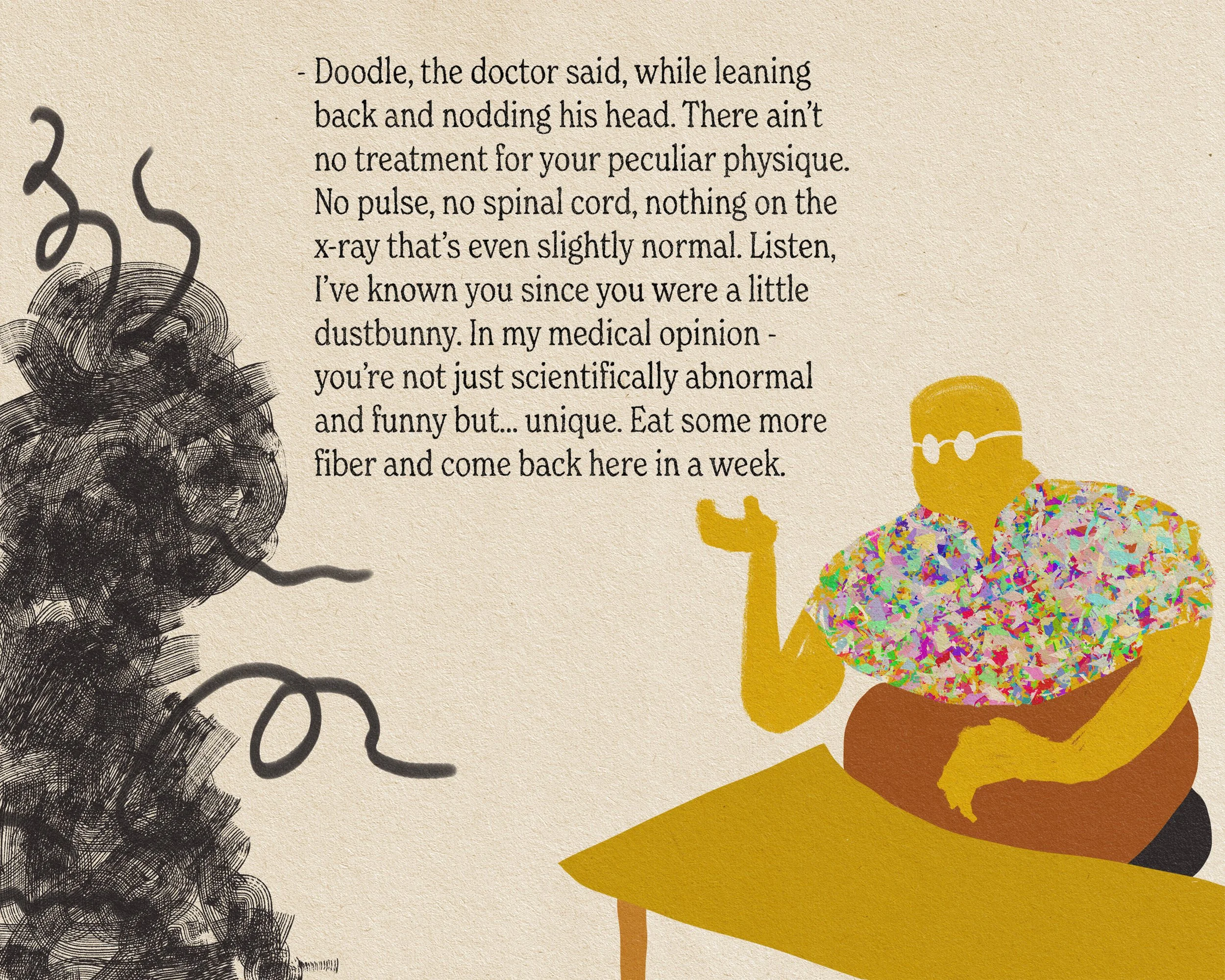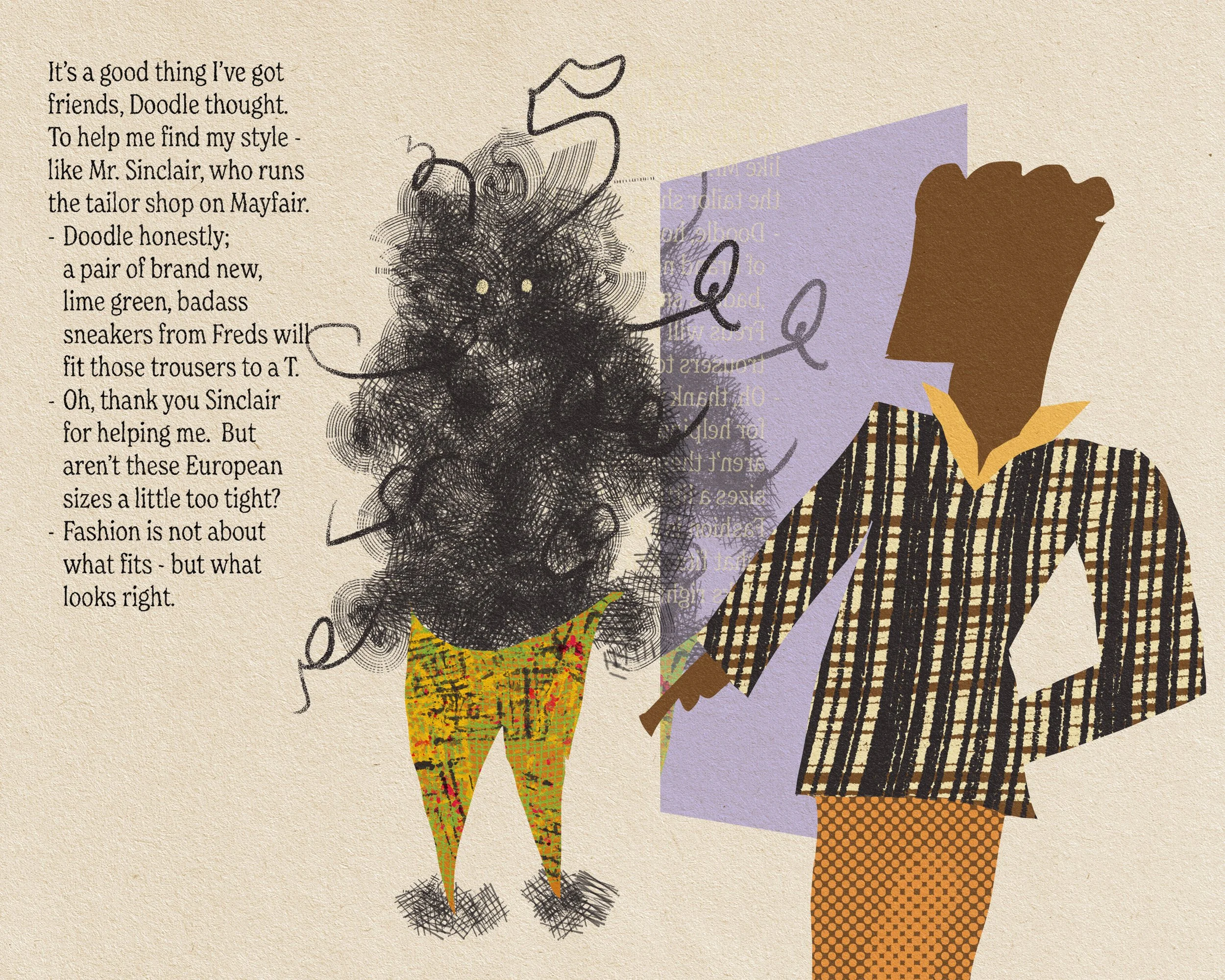 Personal project under development. Illustrated kids book about a doodle who with the help of his friends, doctor and community tries to find his style - just to realize that his fussiness just might be his greatest strength.